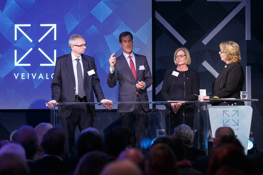 Årskonferanse-programleder Anne Grosvold tok opp denne diskusjonen med Qvam, Statoil-direktør Mette Halvorsen Ottøy og styreleder i Schlumberger, Torjer Halle.